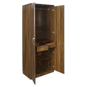 ABBAJI INTERIORS Engineered Wood 2 Door Wardrobe for Bedroom with 2 Drawers and 2 Shelves (Walnut Flair Texture)- Length 30 inch