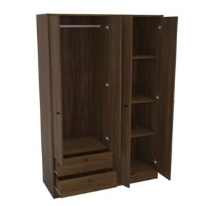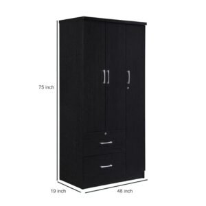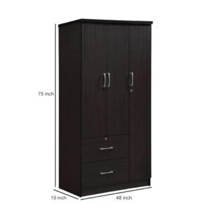ABBAJI INTERIORS Engineered Wood Three-Door Wardrobe 5 Shelves and 2 Drawer (Color-Dark Brown)-Length 48inch,Width 19inch,Height 75inch