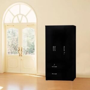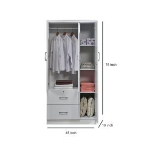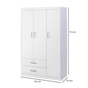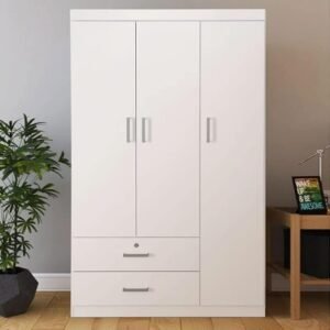 ABBAJI INTERIORS Engineered Wood Three-Door Wardrobe 4 Shelves and 2 Drawer (White Color)-Length 48inch,Width 19inch,Height 75inch