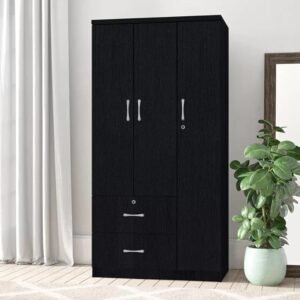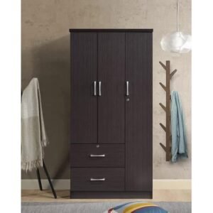 ABBAJI INTERIORS Engineered Wood Three-Door Wardrobe 5 Shelves and 2 Drawer with Classy Look (Dark Brown Color)-Length 48inch,Width 19inch,Height 75inch