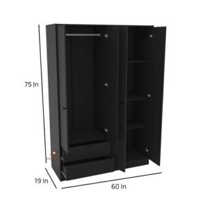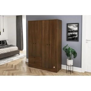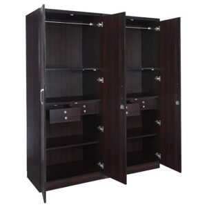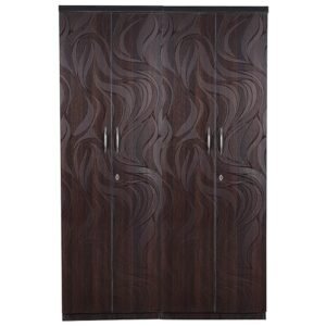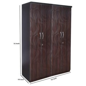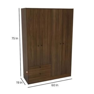 ABBAJI INTERIORS Engineered Wood Four Door Wardrobe with 2 Drawers,5 Shelves (Wallnut Brown)- Length 60inch,Width19inch,Height75inch