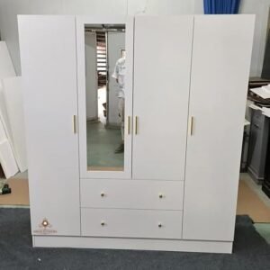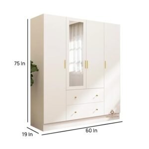 ABBAJI INTERIORS Engineered Wood Four Door Wardrobe with Mirror and 2 Drawers,6 Shelves (White)- Length 60inch,Width19inch,Height75inch
