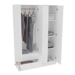 ABBAJI INTERIORS Engineered Wood Four Door Wardrobe with 2 Drawers,5 Shelves (White)- Length 60inch,Width19inch,Height75inch