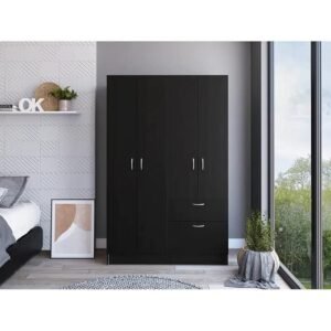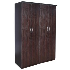 ABBAJI INTERIORS Engineered Wood Four-Door Wardrobe with 4 Drawers,8 Shelves (Dark Wood Texture)- Length 60 inch
