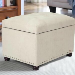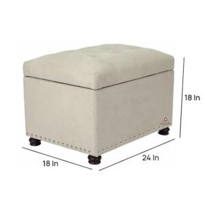 ABBAJI INTERIORS Wooden Single Seater Ottoman Pouffe Couch with Storage-Cream Color