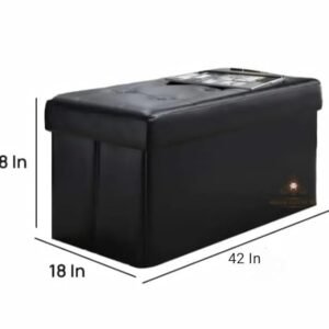 ABBAJI INTERIORS Wooden Two Seater Ottoman Pouffe Couch with Storage-Black