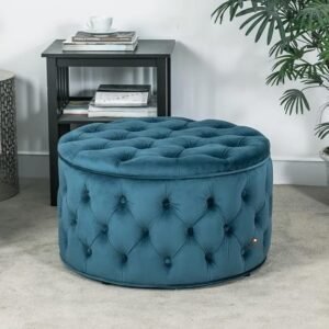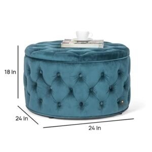 ABBAJI INTERIORS Wooden Ottoman Couch Round Shape with Storage-Modern Blue Color