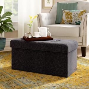 ABBAJI INTERIORS Wooden Two Seater Ottoman Couch with Storage-Carbon Black