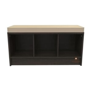 ABBAJI INTERIORS Engineered Wood Shoe Rack Storage Bench with cushion seat and 3 Shelf -for Entryway, Living Room, Office (Dark Brown)