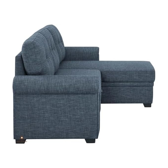 ABBAJI INTERIORS Suede Fabric Corner Sofa Sofa Cum bed for Living Room,Comfortable Sofa Bed with Storage (Blue)