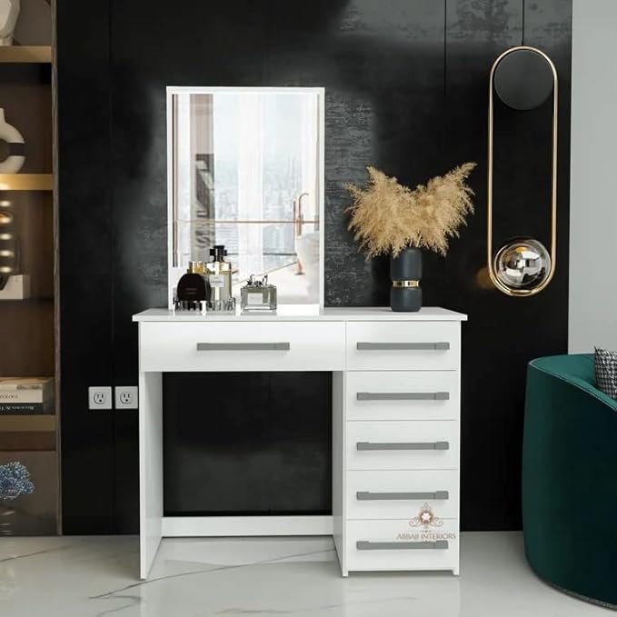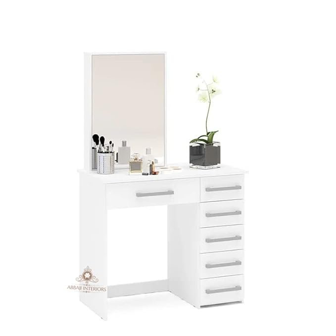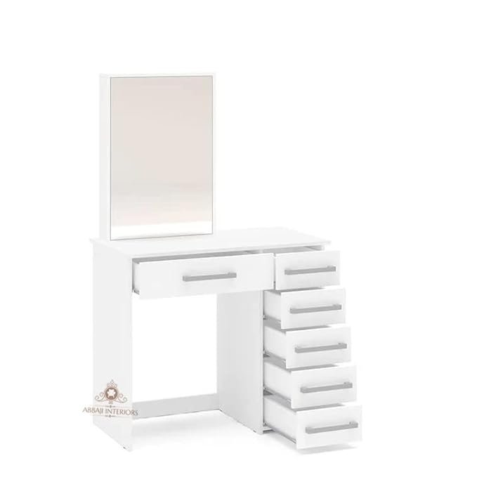 Be the first to review “ABBAJI INTERIORS Engineered Wood Dressing Table/Mirror with Drawer, Storage Shelves with Elegant Frame (White)- Length 36inch,Width 18inch,Height 54inch” Cancel reply