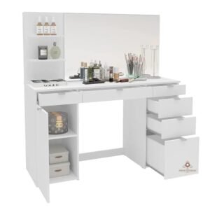 Be the first to review “ABBAJI INTERIORS Engineered Wood Dressing Table with 2 Shelves and 1 Drawer (White Ivory)”