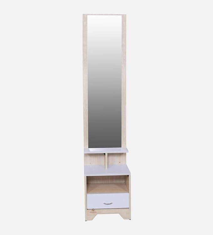 ABBAJI INTERIORS Engineered Wood Dressing Table with 2 Shelves and 1 Drawer (White Ivory)
