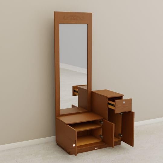 Be the first to review “ABBAJI INTERIORS Engineered Wood Dressing Table with 3 Door and 1 Drawer (Wallnut Brown)”