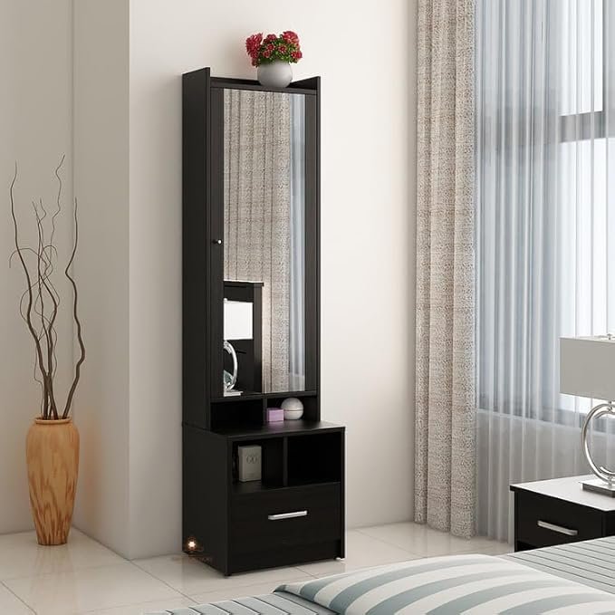 ABBAJI INTERIORS Engineered Wood Dressing Table with 3 Shelves and 1 Drawer (Dark Brown)