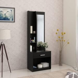 Be the first to review “ABBAJI INTERIORS Engineered Wood Dressing Table with 3 Shelves and 1 Drawer (Dark Brown)”