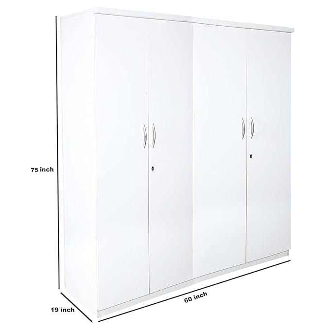 ABBAJI INTERIORS Engineered Wood Four-Door Wardrobe with 4 Drawers,8 Shelves (White Texture)- Length 60 inch