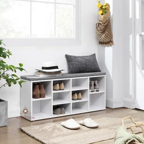 Be the first to review “ABBAJI INTERIORS Engineered Wood Shoe Rack Storage Bench with cushion seat, 10 Shelf -for Entryway, Living Room, Office (White) 48 inch length, 18″ height, 16″ deep” Cancel reply