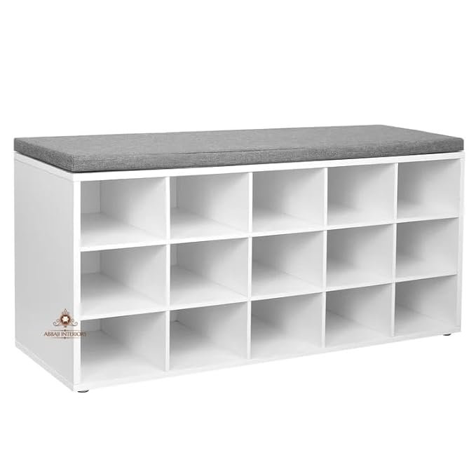 Be the first to review “ABBAJI INTERIORS Engineered Wood Shoe Rack Storage Bench with cushion seat and 15 Shelf -for Entryway, Living Room, Office (White)” Cancel reply