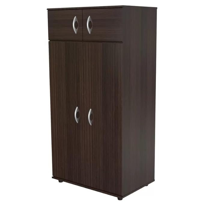 ABBAJI INTERIORS Engineered Wood Two-Door Wardrobe 4 Shelves with Classy Look (Dark Brown Color)-Length 30inch,Width 19inch,Height 75inch