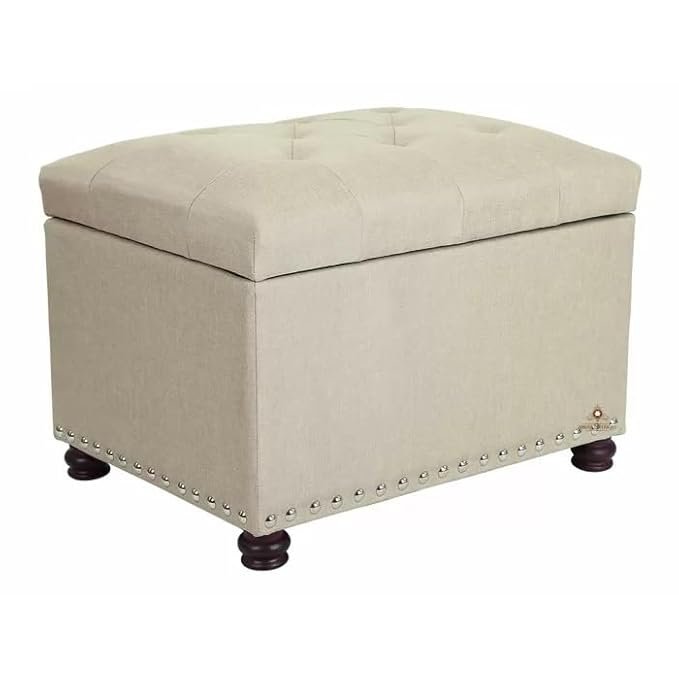 Be the first to review “ABBAJI INTERIORS Wooden Single Seater Ottoman Pouffe Couch with Storage-Off White”