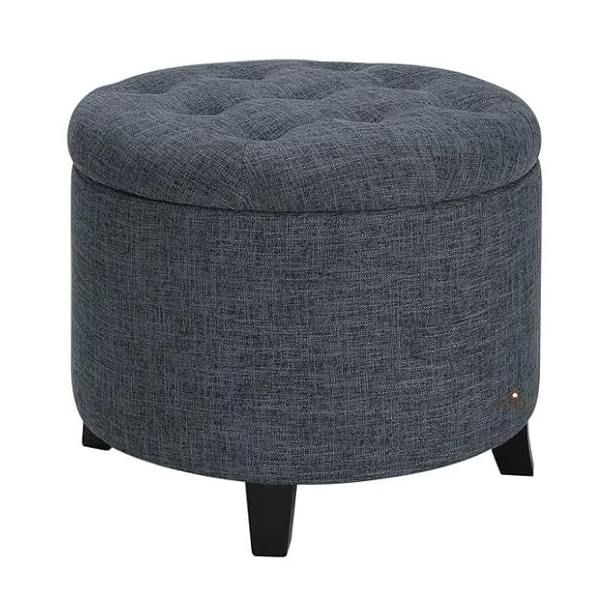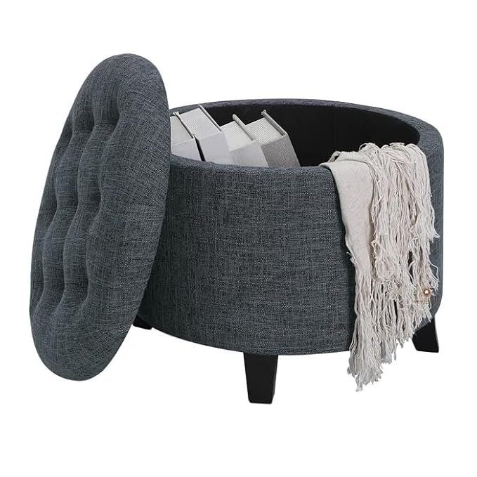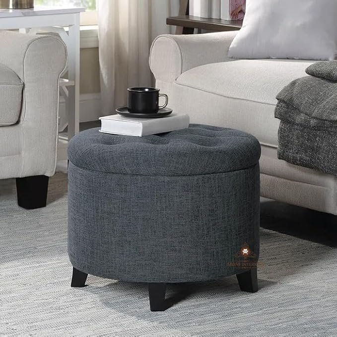 ABBAJI INTERIORS Wooden Single Seater Ottoman Round Couch with Storage-Grey