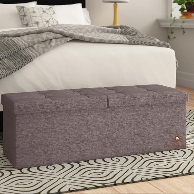 ABBAJI INTERIORS Wooden Two Seater Ottoman Couch with Storage-Bronz Color
