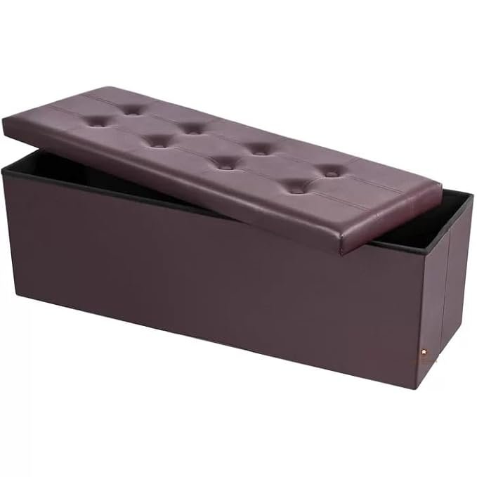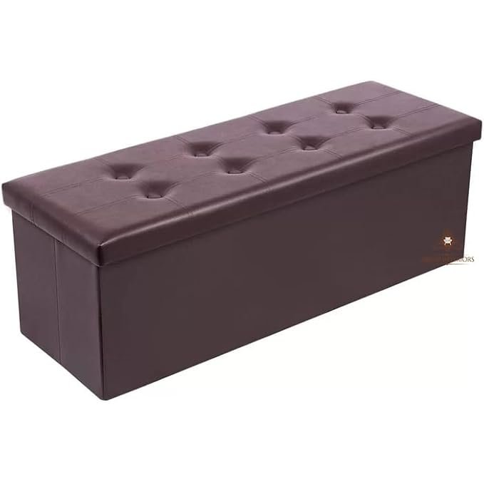 ABBAJI INTERIORS Wooden Two Seater Ottoman Pouffe Couch with Storage-Brown