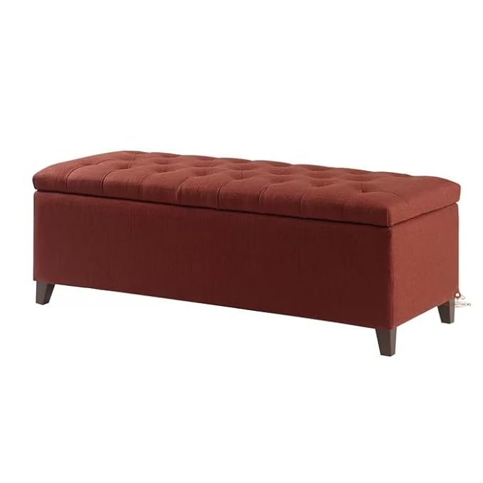 ABBAJI INTERIORS Wooden Two Seater Ottoman Pouffe Couch with Storage-Red