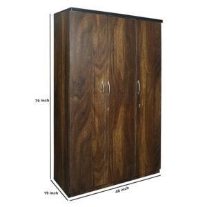 ABBAJI INTERIORS 3 Door Wardrobe Wood Texture with 3 Shelves, 3 Drawers and 1 Locker (Wood Texture)- Length 48 inch