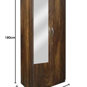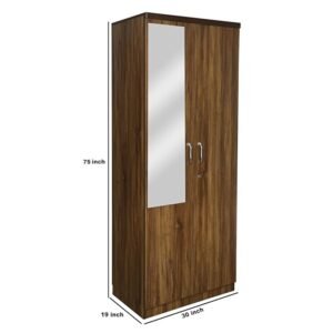 ABBAJI INTERIORS Engineered Two-Door Wardrobe with Mirror and 2 Drawers,4 Shelves (Walnut Flair Texture)- Length 30 inch