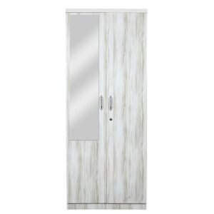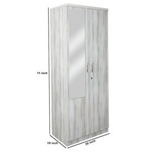 ABBAJI INTERIORS Engineered Wood Two-Door Wardrobe with Mirror and 2 Drawers,4 Shelves (Rustic White Texture)- Length 24 inch