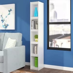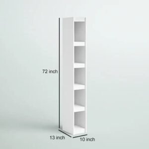 ABBAJI INTERIORS Engineered Wood Bookshelf Storage Cabinet, Book Rack, 5 Shelves (White)-Vertical Design