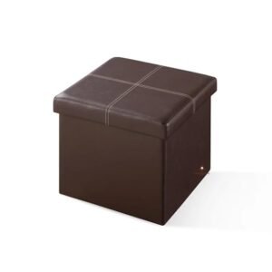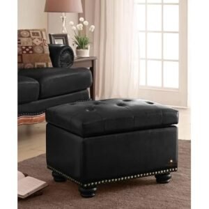 ABBAJI INTERIORS Wooden Single Ottoman Seater Pouffe Couch with Storage-Black