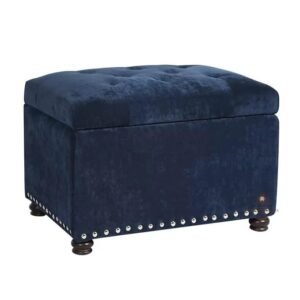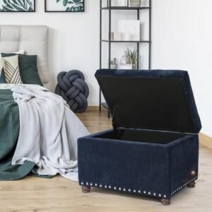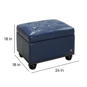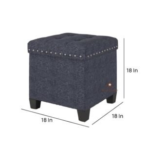 ABBAJI INTERIORS Wooden Single Seater Ottoman Pouffe Couch with Storage-Ink Blue