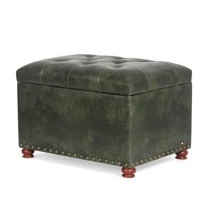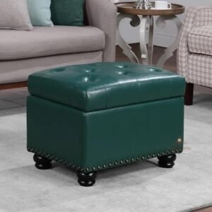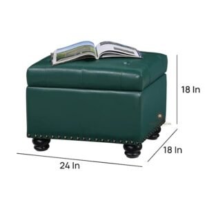 ABBAJI INTERIORS Wooden Single Seater Ottoman Pouffe Couch with Storage-Dark Green