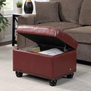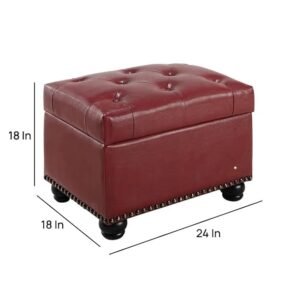 ABBAJI INTERIORS Wooden Single Seater Ottoman Pouffe Couch with Storage-Burgundy Red