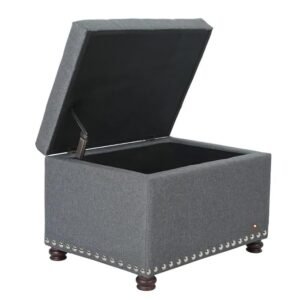 ABBAJI INTERIORS Wooden Single Seater Ottoman Pouffe Couch with Storage-Grey