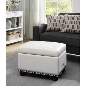 ABBAJI INTERIORS Wooden Single Seater Ottoman Pouffe Couch with Storage-Glossy White