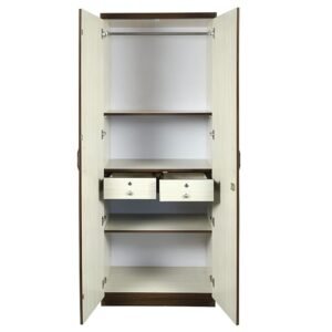 ABBAJI INTERIORS Engineered Two-Door Wardrobe with Mirror and 2 Drawers,4 Shelves (Walnut Flair Texture)- Length 24 inch