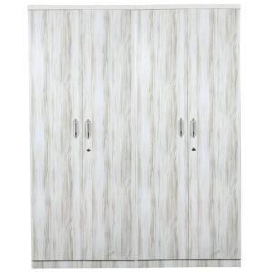 ABBAJI INTERIORS Engineered Wood Four-Door Wardrobe with 4 Drawers,8 Shelves (Rustic White Texture)- Length 72 inch