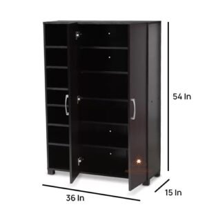 ABBAJI INTERIORS Engineered Wood 3 door Shoe Rack Storage with 13 Shelf -for Entryway, Living Room, Office (Dark Brown)