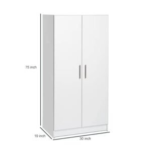 ABBAJI INTERIORS Engineered Wood Two-Door Wardrobe 5 Shelves Cabinet Wardrobe for Living Room (White Color)-Length 30inch,Width 19inch,Height 75inch